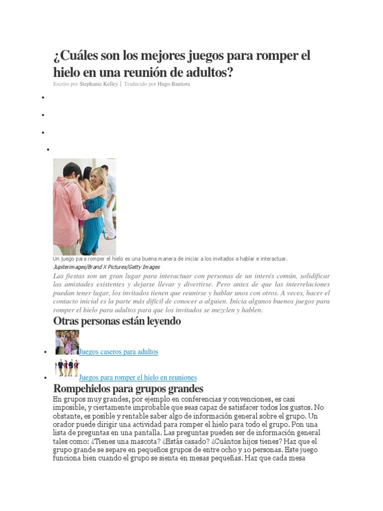 Las actividades para romper el hielo son juegos interactivos diseñados para terminar con la incomodidad de las presentaciones de una muchedumbre de adolescentes en un retiro o en una reunión. Conoce una dinámica rompe hielo para jóvenes que puedas aplicar. Estos juegos divertidos, a menudo rápidos, son excelentes maneras de comenzar una reunión de grupo de jóvenes o una sesión de grupo pequeño. Estuve en la misma situación la semana pasada con un grupo de líderes en la. Para jugar, simplemente recorra la sala y haga que cada persona brinde una respuesta a una pregunta divertida. 1.1 el punto de partida. Para romper el hielo juegos para jugar en el grupo juvenil juegos para romper el hielo ayudan a los miembros del grupo de jóvenes a superar la timidez o la ansiedad y empiezan a sentir como si todos ellos son parte del grupo. Esta dinámica también nos sirve para un par de cosas: Juegos para romper el hielo jovenes. We did not find results for: Hacer preguntas divertidas es un juego fácil y efectivo para romper el hielo. Esta sería una buena actividad para romper el hielo antes de una lección si se vinculan temas de la lección en los dibujos. Para hacer este tipo de dinámicas rompe hielo para jóvenes de una forma mucho más divertida, podríamos convertirlo en una especie de reto de adivina quién donde se tengan turnos para intentar acumular pistas sobre el dueño del objeto que nos haya tocado.