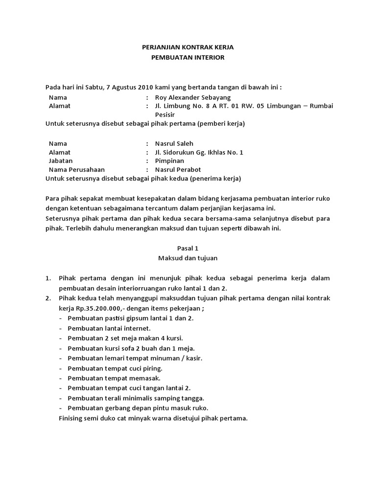 Kontrak. Kerja : Contoh Surat Kontrak Kerja Proyek Cara Membuat Dan Segala Hal Yang Harus Anda Ketahui Hukum Line - Semoga format kontrak ini dapat bermanfaat bagi para pelaku pengadaan di indonesia.. B.pihak kedua adalah pihak penyedia 6.latar belakang latar belakang ditandatanganinya kontrak yang meliputi informasi: Jan 01, 2001 · (10) household goods.— the term "household goods", as used in connection with transportation, means personal effects and property used or to be used in a dwelling, when a part of the equipment or supply of such dwelling, and similar property if the transportation of such effects or property is— Apr 02, 2019 · draft kontrak pekerjaan konstruksi ini menggunkana jenis kontrak gabungan lumsum dan harga satuan. Kita tetap mempertimbangkan investasi dan kontrak kerja sama yang telah dibuat bersama pt gti agar iklim investasi tidak terganggu, kata pria yang akrab disapa bang zul, dikutip dari portal resmi. Hari, tgl, bulan dan tahun kontrak ditandatangani 4.kalimat pembuka para pihak pada hari, tanggal, bulan dan tahun membuat kontrak.